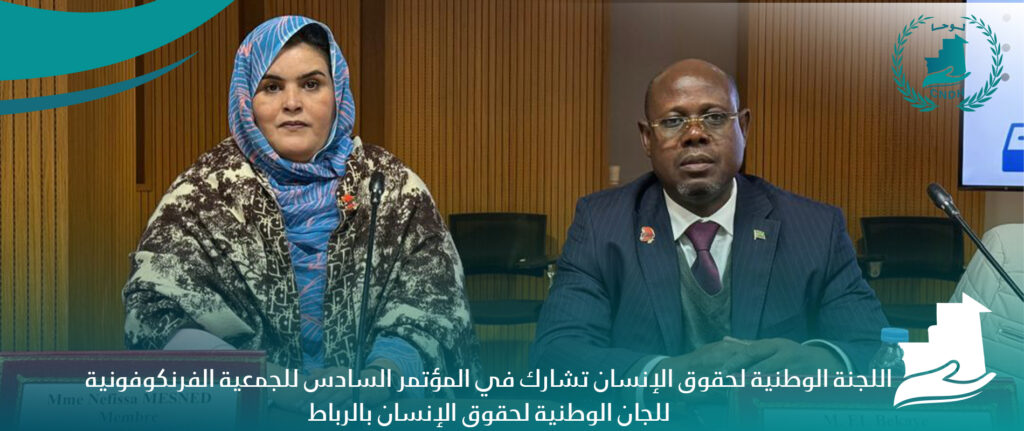شاركت اللجنة الوطنية لحقوق الإنسان ممثلة برئيسها د. البكاي عبد المالك صباح اليوم الثلاثاء السادس عشر من ديسمبر 2025، في المؤتمر السادس للجمعية الفرنكوفونية للجان الوطنية لحقوق الإنسان (ََAFCNDH) المنعقد في العاصمة المغربية الرباط من 16 إلى 17 من شهر ديسمبر الجاري.
