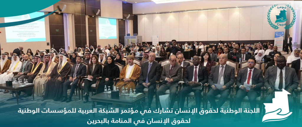 شارك وفد من اللجنة الوطنية لحقوق الإنسان برئاسة رئيس اللجنة الدكتور البكاي ولد عبد المالك في مؤتمر الشبكة العربية للمؤسسات الوطنية لحقوق الإنسان وجمعيتها العامة الخامسة والعشرون المنعقدين في المنامة عاصمة مملكة البحرين تحت شعار: “حماية الأطفال في الفضاء الرقمي: التحديات والتشريعات والإجراءات الوقائية” يومي 12-13 يناير 2026.