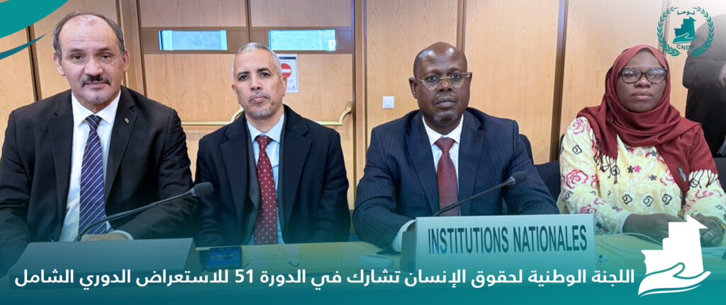 شاركت اللجنة الوطنية لحقوق الإنسان، برئاسة الدكتور البكاي عبد المالك، إلى جانب الوفد الحكومي الموريتاني ووفود المؤسسات الوطنية لحقوق الإنسان ومنظمات المجتمع المدني في الدورة 51 للاستعراض الدوري الشامل، المنعقدة حاليا في جنيف ما بين 19و 30 يناير الجاري.