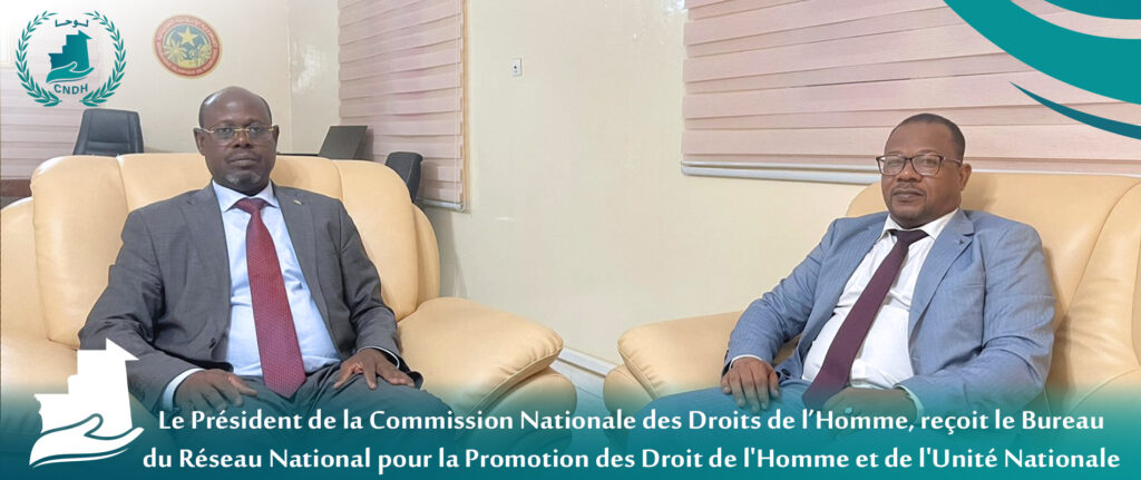 Le président de la Commission nationale des droits de l’homme CNDH, Dr. El Bekaye ABDEL MALICK, a reçu ce matin, mercredi 24 décembre dans son bureau au siège de la Commission, Mr. Taoufiq Sidi Bakari, président du Bureau exécutif du « Réseau National pour la Promotion des Droits de l’Homme, de l’Unité nationale et de la Transparence ». Mr. Bakari était accompagné de membres du Bureau exécutif du Réseau.